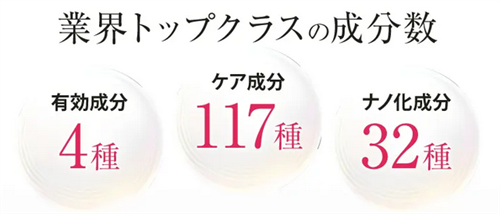 ベルタヘアローションは4種類の有効成分と合計117種類の成分を配合しており、どれも女性の頭皮環境の改善や髪を守る作用があるものだけを使用しています。