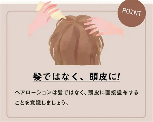 頭皮は全体的な血行改善や炎症予防が必要になりますので、全体的に育毛剤を塗布しましょう。
