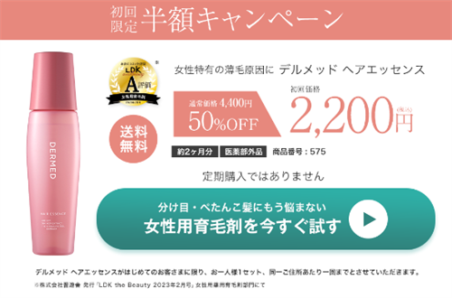 デルメッドヘアエッセンス販売店で最安値で購入できるのは公式サイトだけの「初回限定半額キャンペーン」です。
