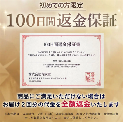 保証内容はお届け2回分の代金全額となっていますので、定期購入は購入者になんの負担もなくお得に購入できますよ。