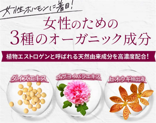 女性ホルモンをサポートする成分や血行促進効果があるセンブリエキスなどが配合されているとのことで、とても安心感がありますね。