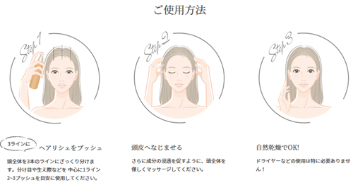 頭皮や髪が濡れたまま塗布すると成分が薄まり効果が期待できません。