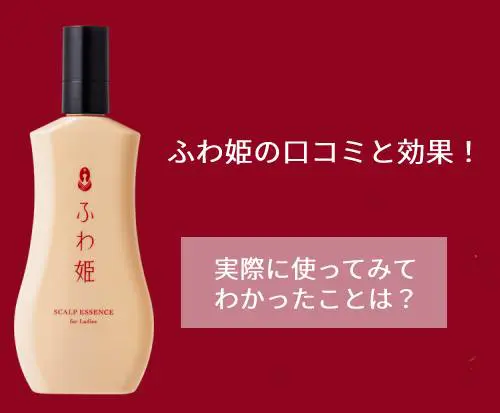 ふわ姫という育毛エッセンスが口コミでも話題になっています。 年齢とともに悩みが増える女性の頭髪は、適切な美髪ケアが大切なのは皆さんもご存じかもしれません。 ボリュームがなくなり心配になる40代以降の方に人気があるふわ姫。 このサイトでは実際に体験して感じたことや口コミ情報などまとめて解説いたします。 \ 初回限定 1,480円 / 継続回数のお約束なしで お得に購入
